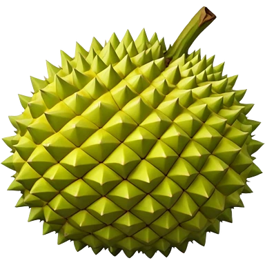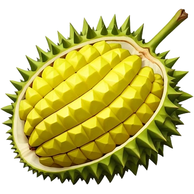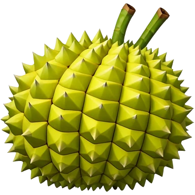 Cinematic Realistic Durian Fruit Dish Emoji, depicted as the notorious spiky fruit with a rich, custardy interior rendered with lifelike detail and bold, distinctive lighting. emoji