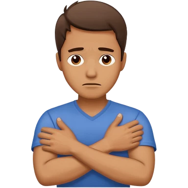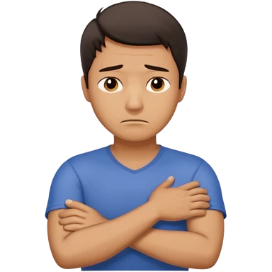 A man looking stressed holding the front of his neck with his arms crossed emoji | AI Emoji Generator