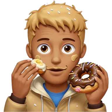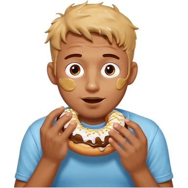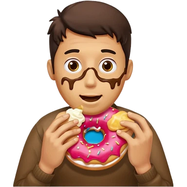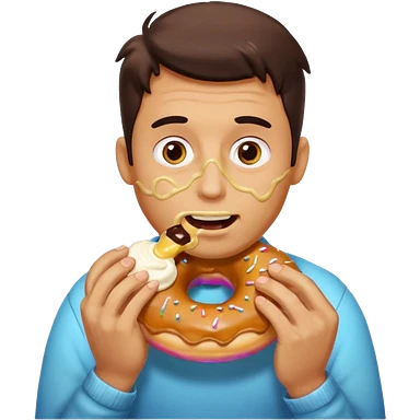 A man messily eating a filled donut, the donut is filled with Boston cream and it’s making a mess everywhere emoji | AI Emoji Generator