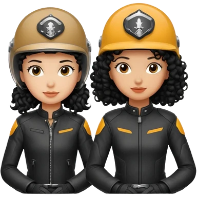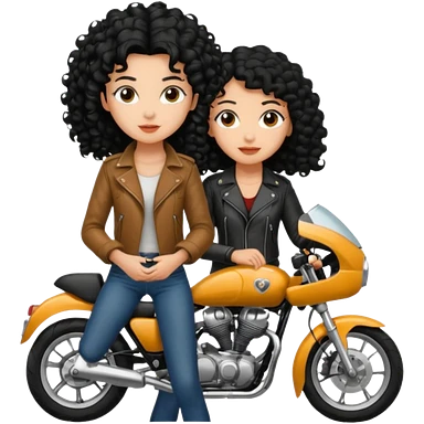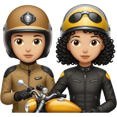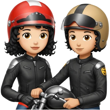 A man motorcyclist and a shorter girl with curly black hair, facing each other. emoji | AI Emoji Generator