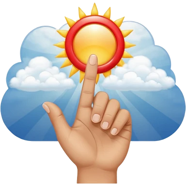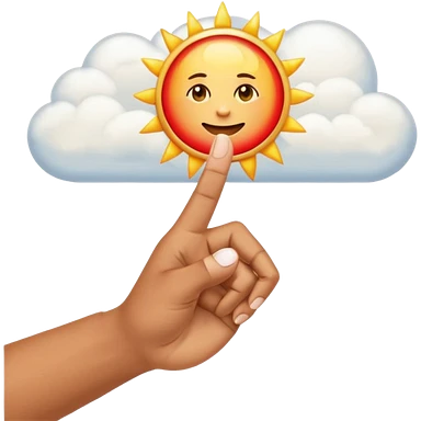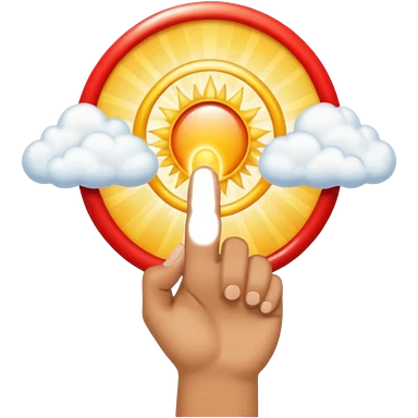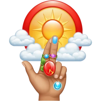 "Create an emoji representation of a hand holding other. One hand with index finger pointing up, surrounded by clouds and sun rays, with a red ring on the ring finger." emoji