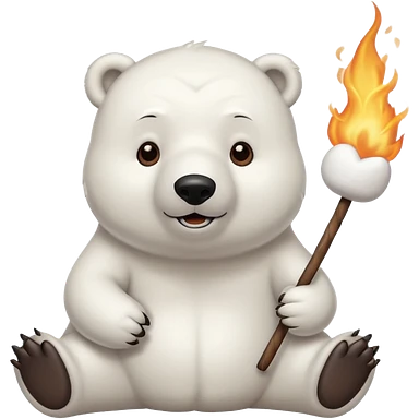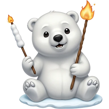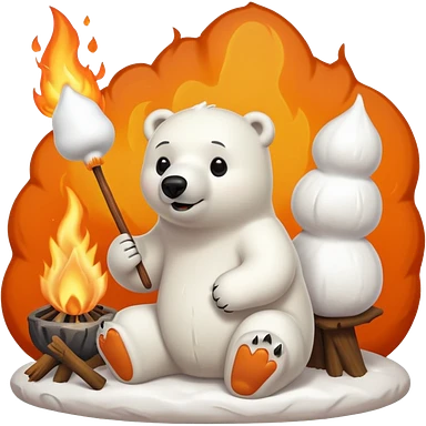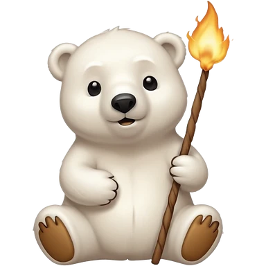 polar bear by a campfire roasting a marshmallow on a stick emoji