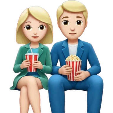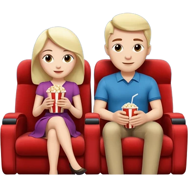 A couple sitting on a sofa inside a movie theater enjoying a film. emoji