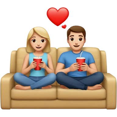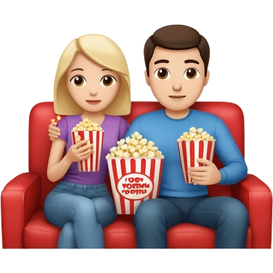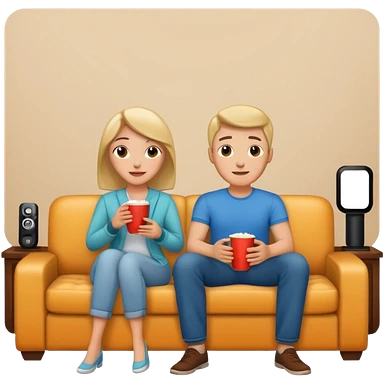 A couple sitting on a sofa in a room enjoying a movie emoji