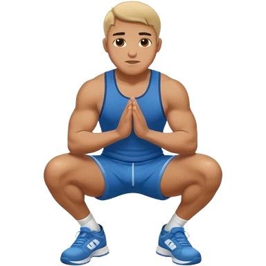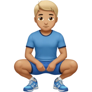 A man squatting down and holdig his hand flat a bit above the ground emoji