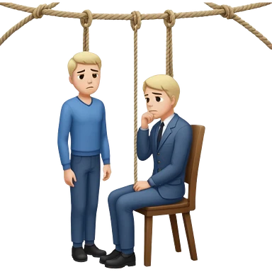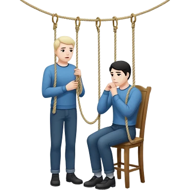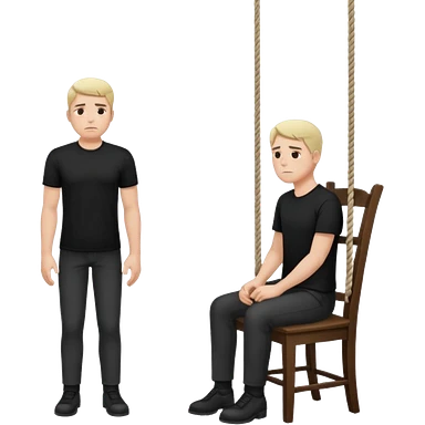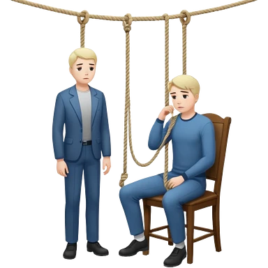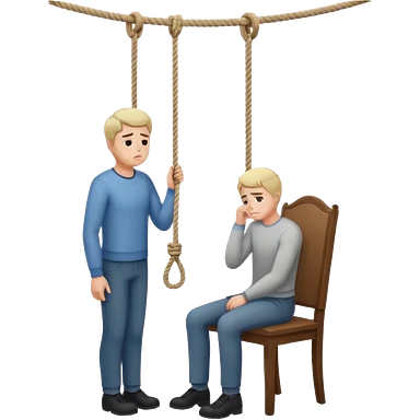 A man standing in the chair and looking at rope before going to suicide emoji | AI Emoji Generator