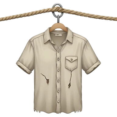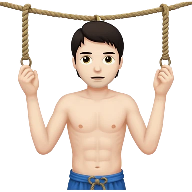 A man with a rope tied by his neck hanging, dead eyes, full body hanging, no other ropes around him emoji