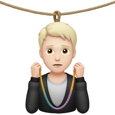 A man suffocating himself with a rope emoji