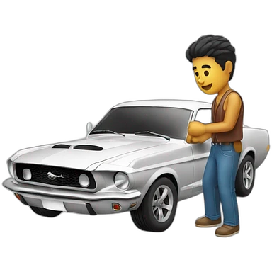 Photo of a man with a hat on fixing a car with a hammer emoji