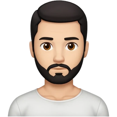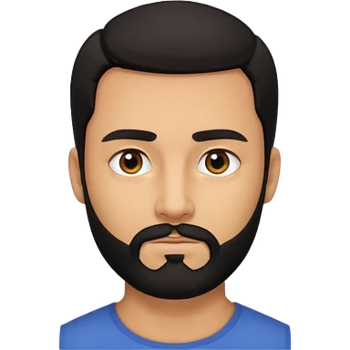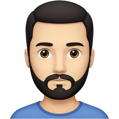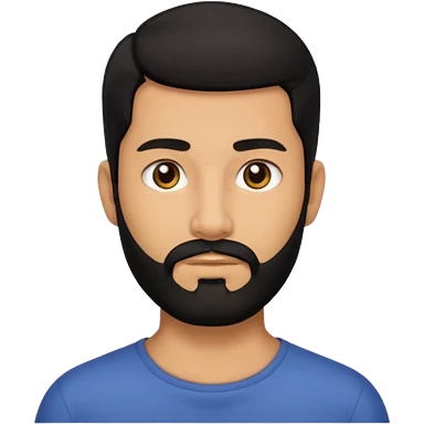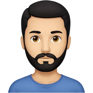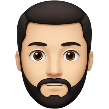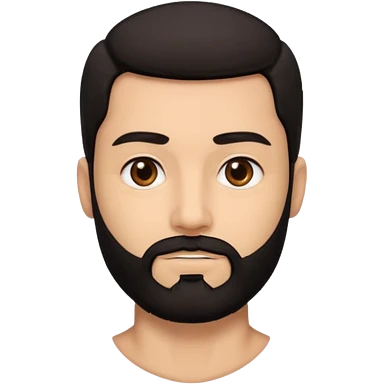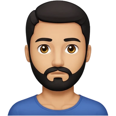 A man with black eyes. With a black beard and medium smooth hair. with the neck emoji
