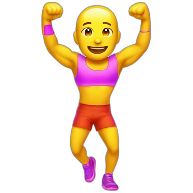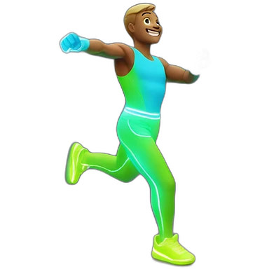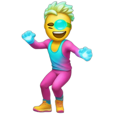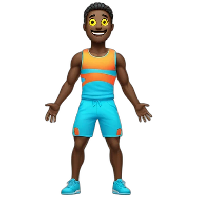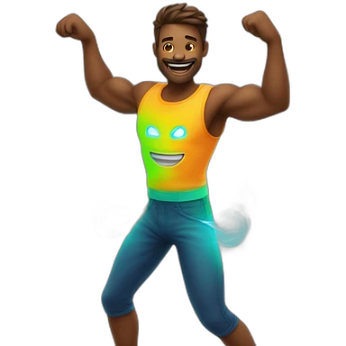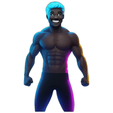 Fit, playful emoji-man with vivid neon glow, exuding a cheerful aura, and strong, lively posture.” emoji