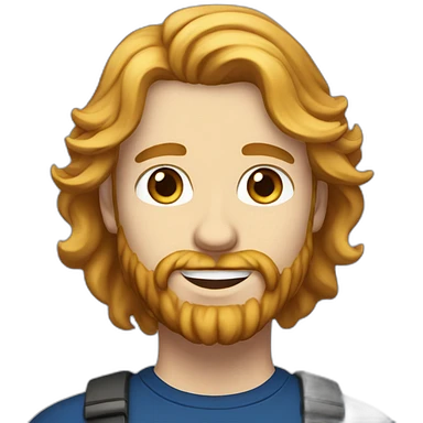 an english man in his twenties with long wavy blonde hair and a red beard and blue eyes emoji