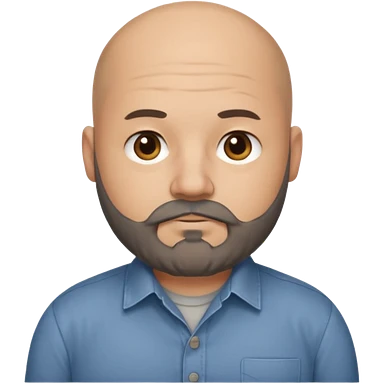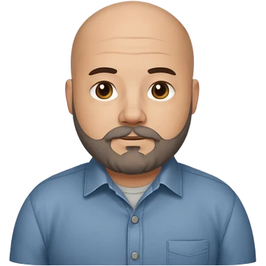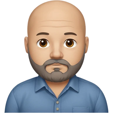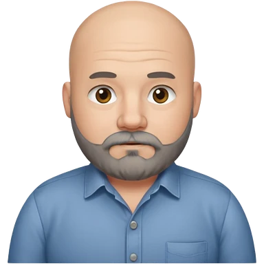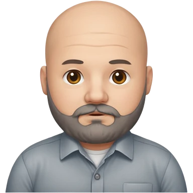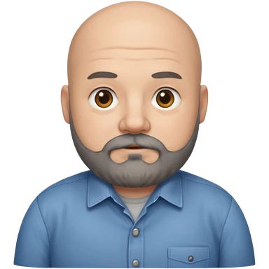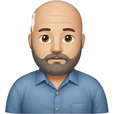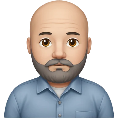 Mid-30s Bald chubby professional man with bushy black and grey beard, wearing a button down shirt emoji