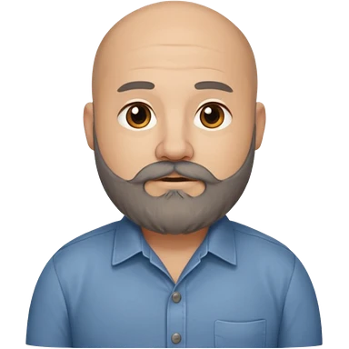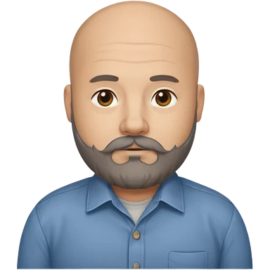 Mid-30s Bald chubby professional man with long bushy black and grey beard, wearing a button down shirt emoji