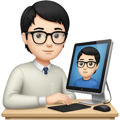 a handsome man doing editing on his pc emoji