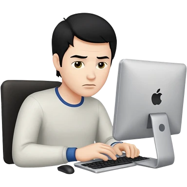 Emoji-style adult man coding at a PC on a black chair and table. Modern 3D emoji look, clean and expressive. emoji