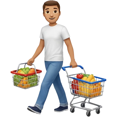 full body of a man pushing a shopping cart inside a supermarket emoji