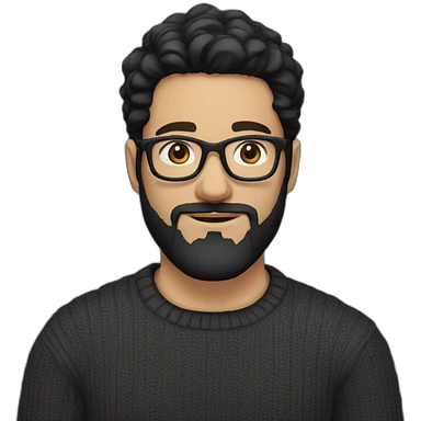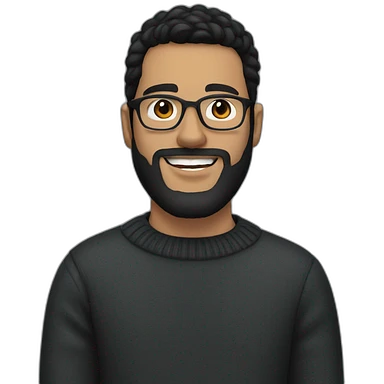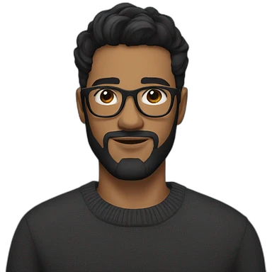 A young man with black hair styled up and to the side, a beard and wearing dark grey glasses and a black sweater emoji