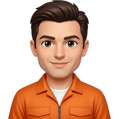 a man with dark brown hair and brown eyes wearing an orange jumpsuit emoji