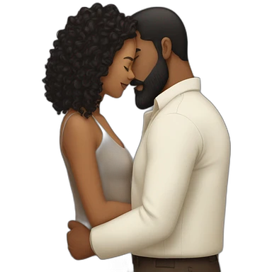 White man with very short black hair and a black beard cuddling a black curvy woman with long black straight hair emoji