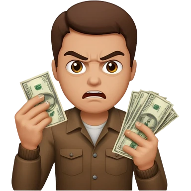young hustler with dreads with a angry face holding money with both hands wearing designer clothing emoji