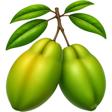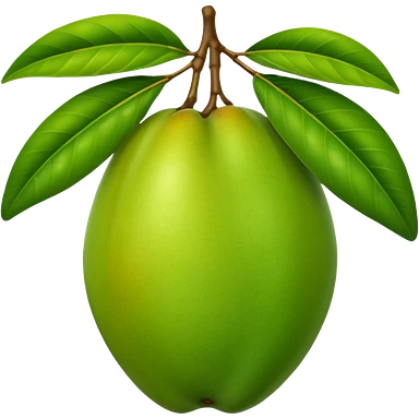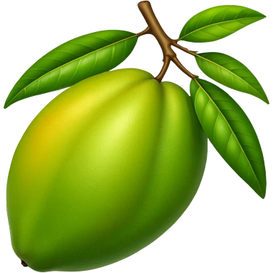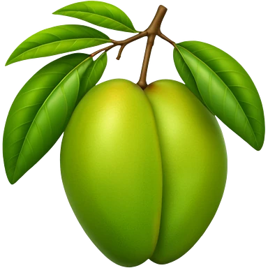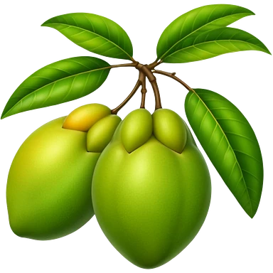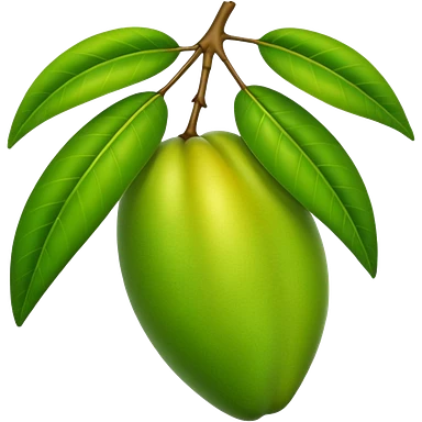A 3D cartoon mango tree with golden-yellow mangoes visible among dense leaves, sunny atmosphere, Memoji-style rendering. emoji