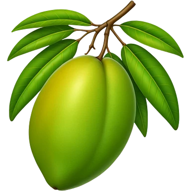 a house on a mango tree branch with a small bird inside, green leaves, emoji style emoji