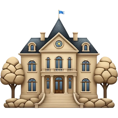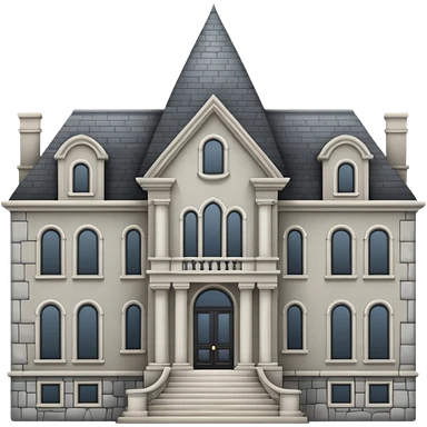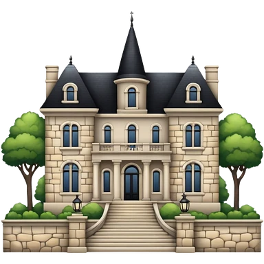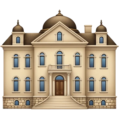 Apple-style 3D emoji of a large traditional mansion, with multiple windows, a big entrance door, red tiled roof, cream-colored walls, decorative balcony details, cartoonish but elegant design, no background. emoji