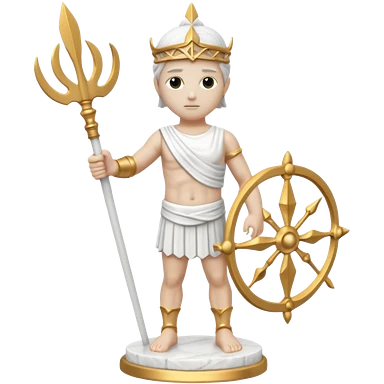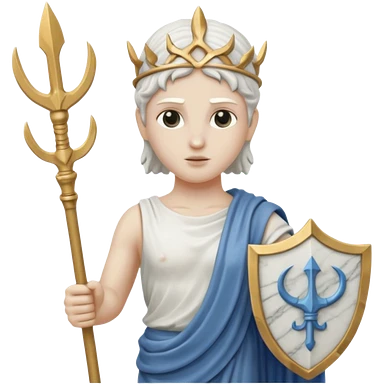a greek white marble statue holding a marble trident. emoji