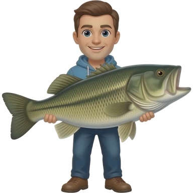 a guy holding a massive bass fish emoji