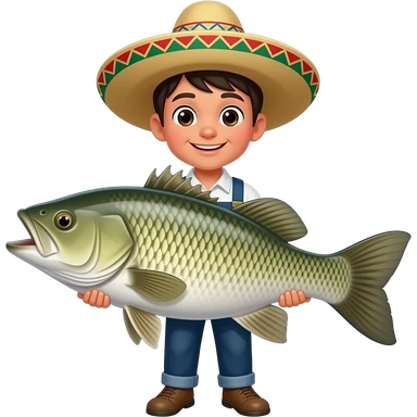 a mexican kid holding a massive bass fish emoji