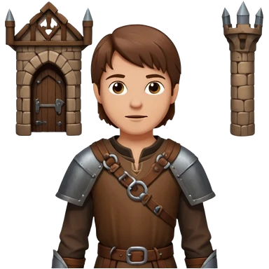 a medieval adventurer with a dungeons behind it emoji | AI Emoji Generator