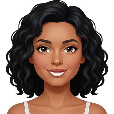 Medium skinned girl with brown curly shoulder length hair round doe hazel eyes and full lips emoji