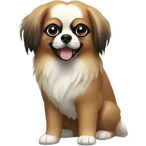 A medium-sized dog with a predominantly black coat and a white blaze on its chest and face. The dog has large, dark eyes and a long, pointed snout. The dog's ears are floppy and it has a gentle expression. emoji | AI Emoji Generator