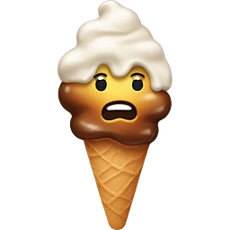 A brown dog wearing a white hoodie while eating melted ice cream emoji