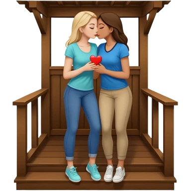 a girl, big butt, white, on her porch, having sex with another girl, no pants, kissing emoji