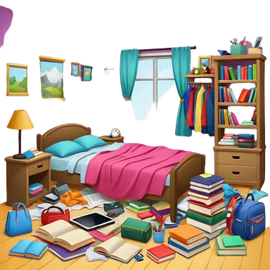 a messy bedroom from a front view emoji | AI Emoji Generator
