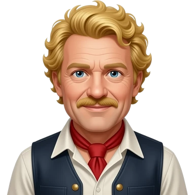 a man middle age man with curly yellow hairs wear wild west clothes emoji
