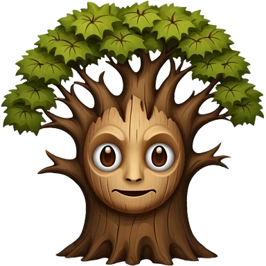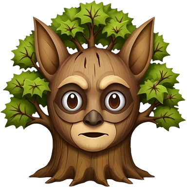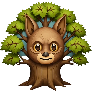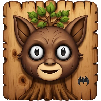Make a wood with a face and wooden legs and arms and a bat emoji
