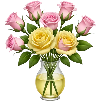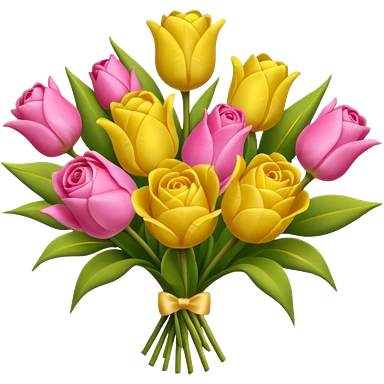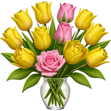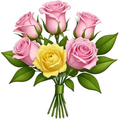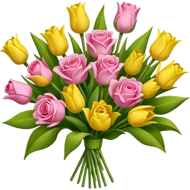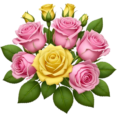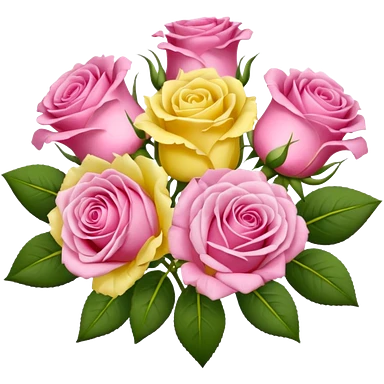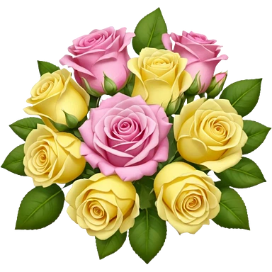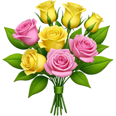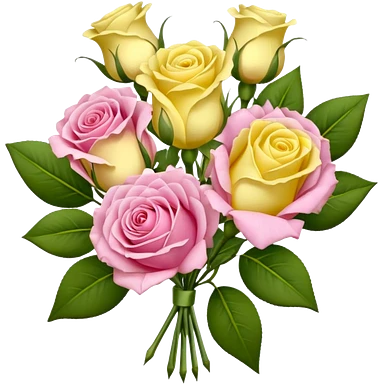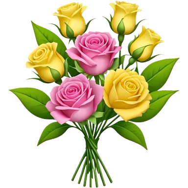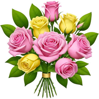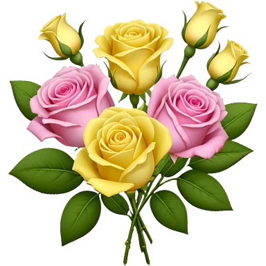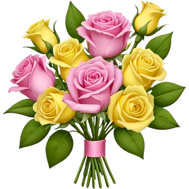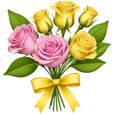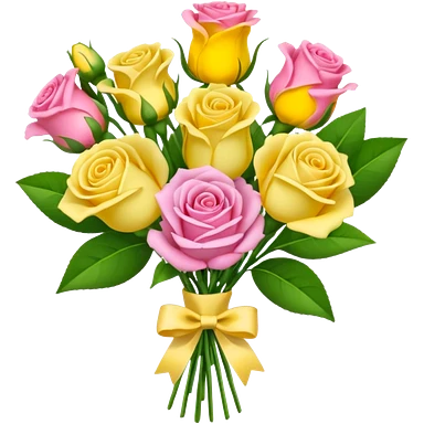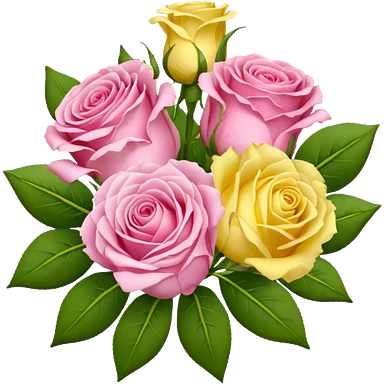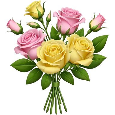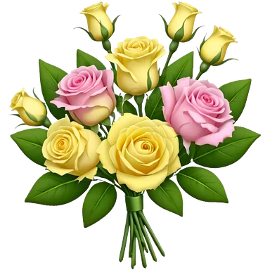 A mixed bouquet of four flowers, featuring pink roses and yellow lisianthus. emoji | AI Emoji Generator