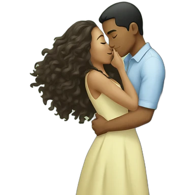 A mixed race man with very little hair kissing a white woman with brown hair, Who embrace each other tenderly emoji | AI Emoji Generator