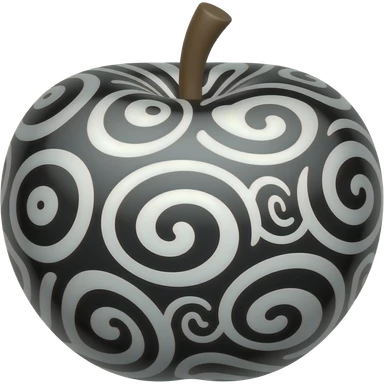 A glossy cartoon emoji fruit, spherical with swirl patterns all over, shiny black and white variants, smooth gradients, soft reflections, thick outline, cute and polished emoji design, centered composition emoji