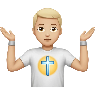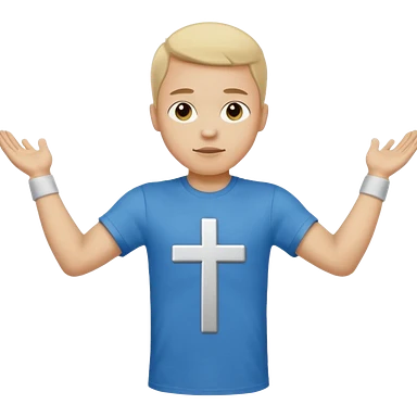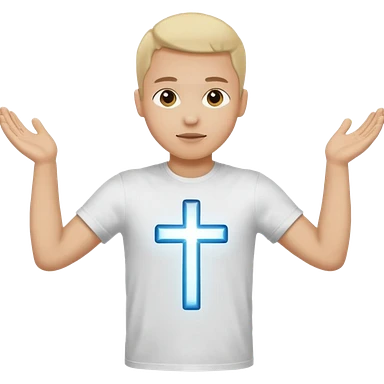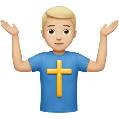 A person with the arms opened and extended forming a cross with their arms and body with t-shirt emoji