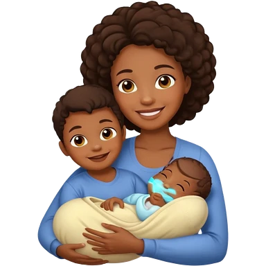 A mom holding her new born son that is blonde and happy and the mom has dark hair her skin is brown and her son's skin is white emoji | AI Emoji Generator