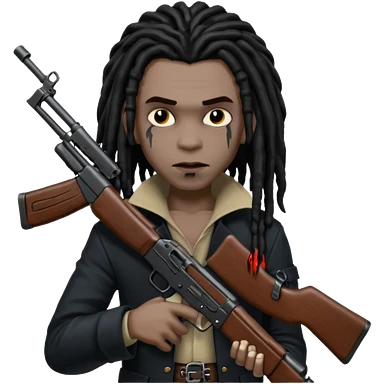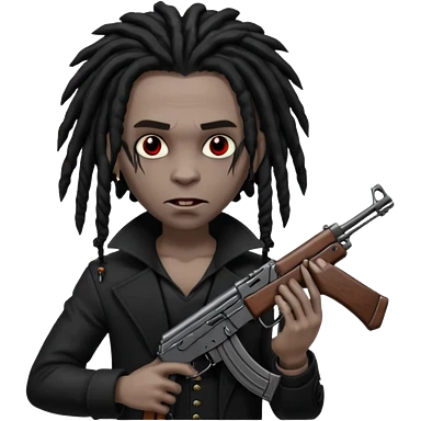 A black vampire with dreads holding a ak 47 emoji