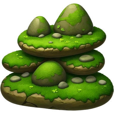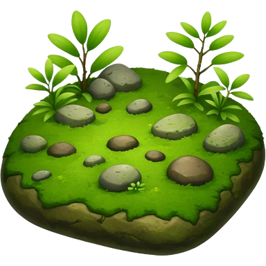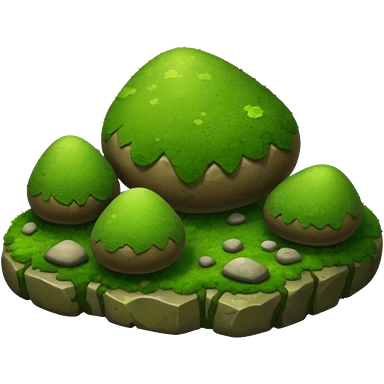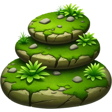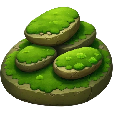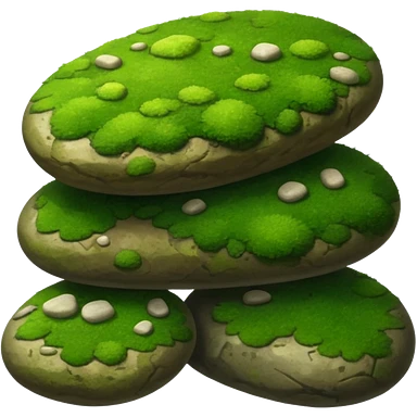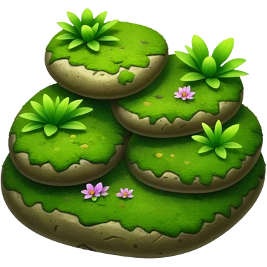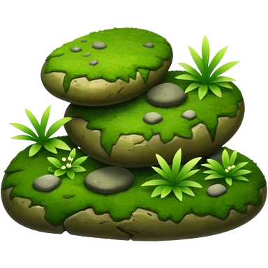 A patch of bright moss covering smooth forest stones with wild plants emoji