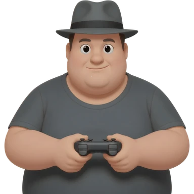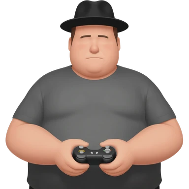 morbidly obese guy holding a controler and wearing a fedora emoji