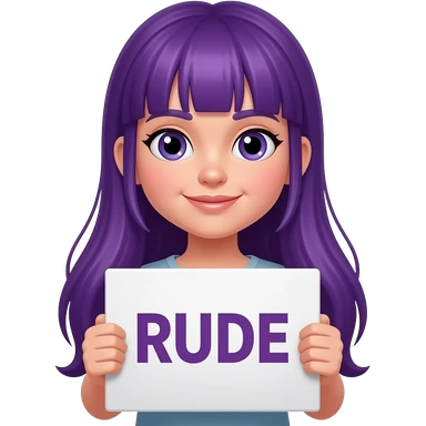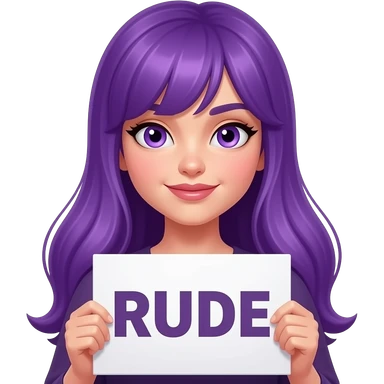 girl with long purple hair holding a RUDE sign emoji