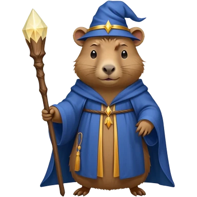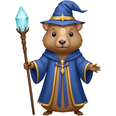 A mythical Queen Capybara wearing a wizard robe and a wand emoji | AI Emoji Generator