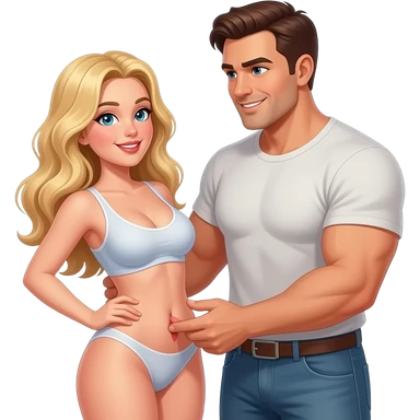 Blonde, green eyed woman with long hair. She is curvy with a big butt and small breast. She is in sexy clothes nude and full body exposed. She has nice long legs. She is doing sexy pose emoji